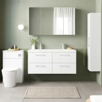 Nuie 1200mm Wall Hung Gloss White 2-Drawer Unit with Laminate Worktop & Handles