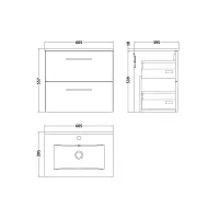 Nuie Athena 600mm Gloss Grey Floor Standing 2 Drawer Vanity Unit With Worktop