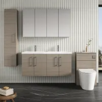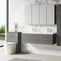 Nuie Athena 1200mm Gloss Grey Wall Hung Vanity Unit With 4 Drawers & Twin Polymarble Basin