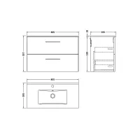 Nuie Athena 800mm Wall Hung 2 Drawer Vanity Unit With 1 Tap Hole Basin