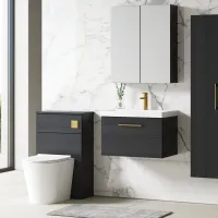 Nuie 800mm Charcoal Black Wall Hung 2-Drawer Unit With Laminate Worktop