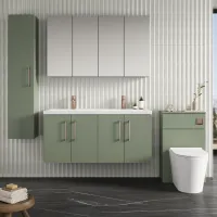 Nuie Arno 800mm Wall Hung Satin Green 2-Drawer Vanity & Thin-Edge Basin