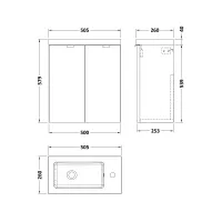 Hudson Reed Juno 500mm Metallic Slate Wall Hung 2 Door Vanity Basin Unit with Thin-Edge Ceramic Basin