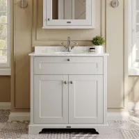 Hudson Reed Old London 820mm Floor Standing 2 Door Vanity Unit with 3 Tap Hole Grey Marble Top Basin