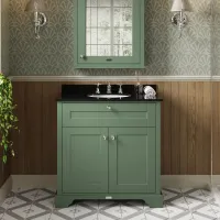 Hudson Reed Old London 820mm Hunter Green Floor Standing 2 Door Vanity Unit with 3 Tap Hole Black Marble Top Basin