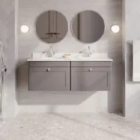 Nuie 1200mm 4 Drawer Coastal Grey Wall Hung Vanity Unit with Double Basin
