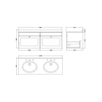 Nuie Classique 1220mm Wall Hung 2 Drawer Vanity Unit with Square Basin, 2 Tap Hole, and Backsplash