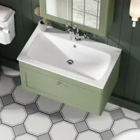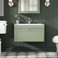 Nuie Classique Traditional 630mm Satin Green Wall Hung 1 Drawer Vanity Unit with 0 Tap Hole Basin