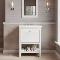 Hudson Reed Bexley 600mm Pure White 1 Drawer Floor Standing Vanity Unit With 3 Tap Hole Fireclay Basin