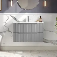 Hudson Reed Fluted 800mm Satin Grey Wall Hung 2-Drawer Vanity Unit With Basin
