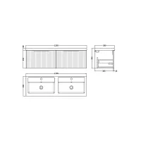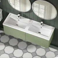 Hudson Reed Fluted 1205mm Satin Green Wall Hung 2-Drawer Vanity Unit With Double Polymarble Basin