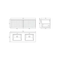 Hudson Reed Fluted 1200mm Wall Hung 2-Drawer Vanity and Double Basin