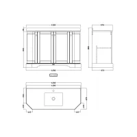 Hudson Reed Old London 1236mm Twilight Blue Floor Standing 4 Door Angled Vanity Unit With Black Marble Top Basin
