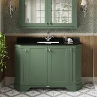 Hudson Reed Old London 1236mm Hunter Green Floor Standing 4 Door Vanity Unit With Black Marble Top