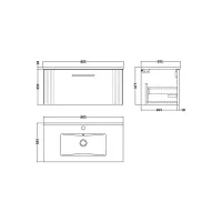Nuie Classique 800mm 1 Drawer Wall Hung Vanity Unit with 3 Tap Hole Basin