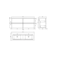 Nuie Arno 1205mm Satin Grey Wall Hung 4 Drawer Vanity Unit with Double Polymarble Basin