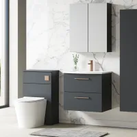 Nuie Arno 500mm Satin Grey Wall Hung 2 Door Vanity Unit & Basin