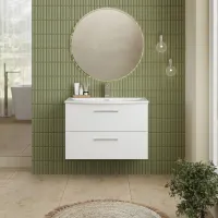 Nuie 800mm Wall Hung 2-Drawer Vanity Unit Including Curved Basin