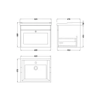Nuie Classique 600mm Wall Hung 1 Drawer Unit & 3 Tap Hole Basin