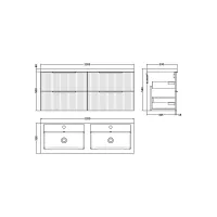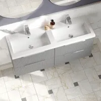 Hudson Reed Fluted 1205mm Satin Grey Wall Hung 4-Drawer Vanity Unit with Double Basin, Pre-Assembled