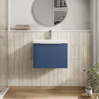 Hudson Reed Fluted 500mm Satin Blue Wall Hung Single Drawer Vanity Unit With Basin
