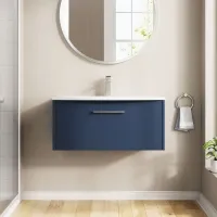 Hudson Reed Juno 800mm Midnight Blue Wall Hung Single Drawer Vanity Unit & Basin