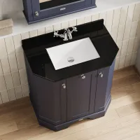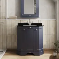 Hudson Reed Old London Twilight Blue Floor Standing 3 Door Vanity Unit With Black Marble Top Basin