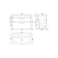 Nuie Athena 800mm 2 Drawer Wall Hung Vanity Unit With Basin