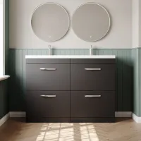 Nuie Athena 1200mm Gloss Grey Floor Standing 4 Drawer Vanity Unit With Twin Polymarble Basin