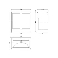 Larck 800mm 2-Door Floor Standing Unit with Contemporary Fireclay Basin - 1 Tap Hole