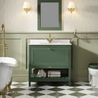 Nuie Classique 600mm Satin Green Floor Standing 2 Door Vanity Unit with 3 Tap Hole Round Basin