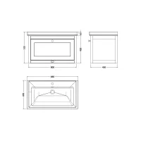 Nuie Classique 600mm Wall Hung 1 Drawer Vanity Unit with 3 Tap Hole Basin with Chrome Knob Handle