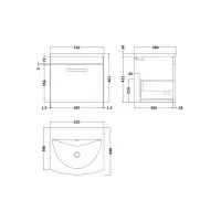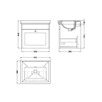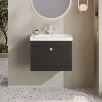 Nuie Classique 600mm Soft Black Wall Hung 1 Drawer Vanity Unit & Basin with 1 Tap Hole