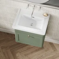 Nuie Classique 500mm Satin Green Wall Hung 1 Drawer Vanity Unit With Basin