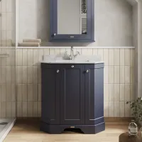 Hudson Reed Old London 750mm Twilight Blue Floor Standing 3 Door Vanity Unit With Grey Marble Top Basin