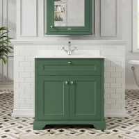 Hudson Reed Old London 800mm Hunter Green Floor Standing 2 Door Vanity Basin Unit with White Marble Top Basin