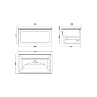 Larck 800mm Single Drawer Wall Hung Unit with Traditional Fireclay Basin - 3 Tap Holes
