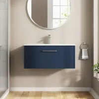 Hudson Reed Juno 800mm Midnight Blue Wall Hung Single Drawer Vanity Unit with Basin and Soft Close Drawer