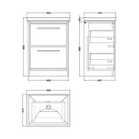 Lille 600mm Floor Standing 2-Drawer Vanity with Basin - 0 Tap Hole