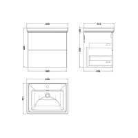 Kivo 600mm 2- Drawer Wall Hung Unit with a Traditional Fireclay Basin - 1 Tap Hole