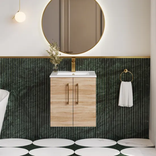 Nuie 500mm Bleached Oak Wall Hung 2-Door Vanity Unit with Basin