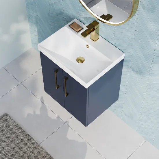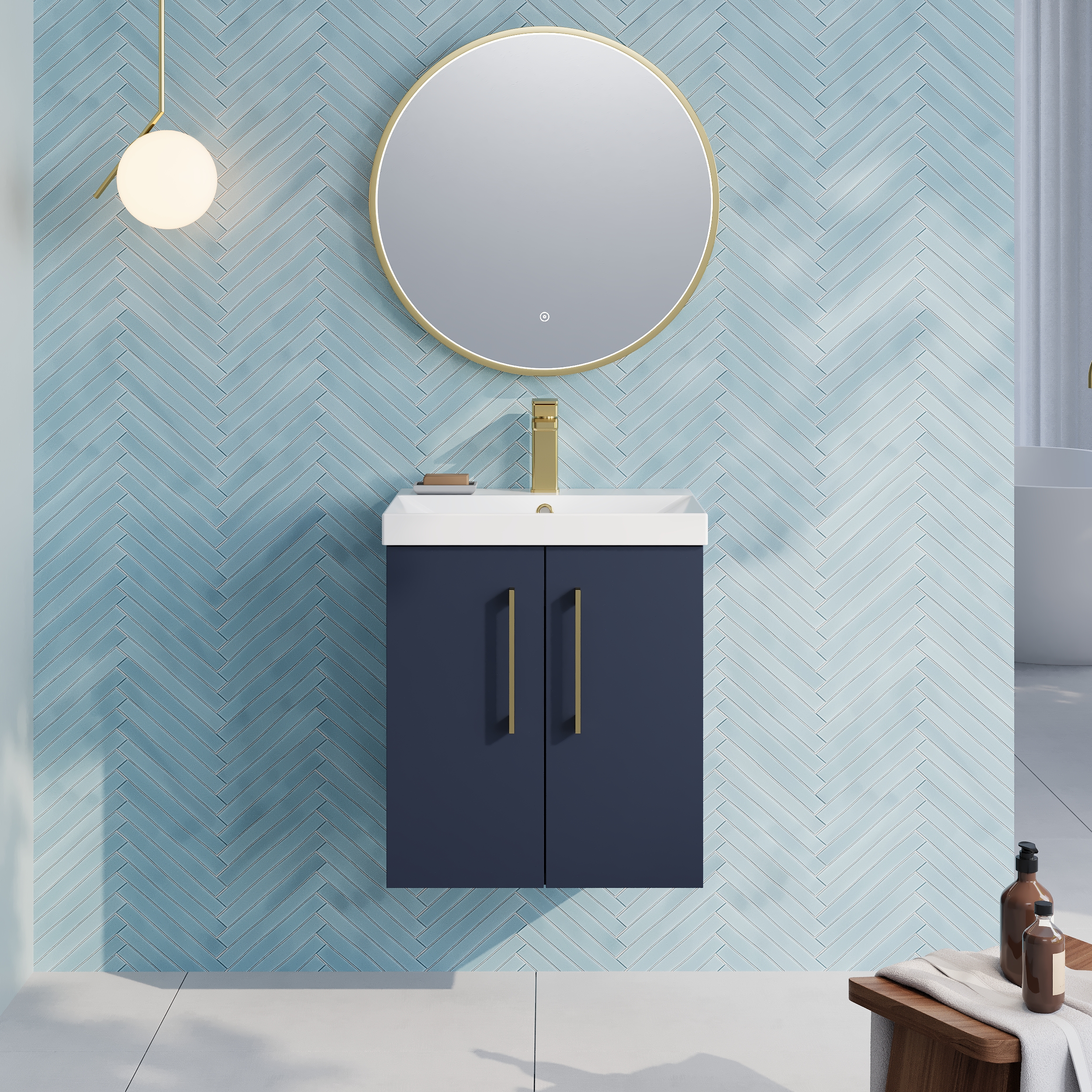 Nuie 500mm Midnight Blue Wall Hung 2-Door Vanity Unit with 1 Tap Hole Basin and Handles