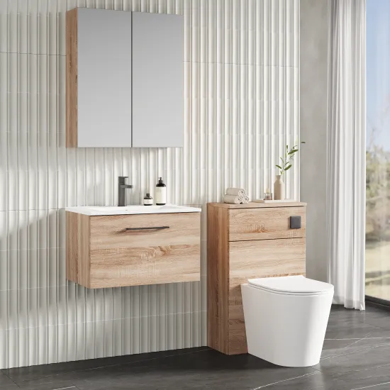 nuie 600mm Wall Hung 1-Drawer Vanity & Basin 2 - Bleached Oak