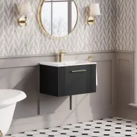 Nuie Deco 600mm Soft Black Wall Hung Single Drawer Vanity Unit with Basin & Chrome Handle
