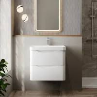 Nuie Lunar 600mm Wall Hung 2 Drawer Unit & Ceramic Basin