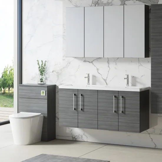 nuie Arno 1200mm Wall Hung 4-Door Vanity & Double Basin - Anthracite