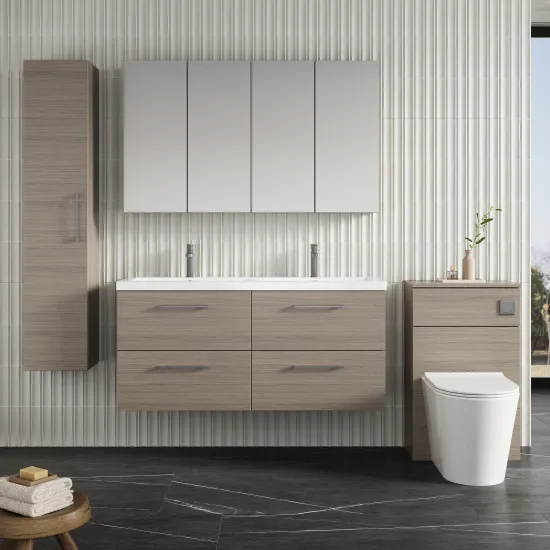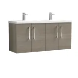 Nuie 1200mm Solace Oak Wall Hung 4-Door Vanity Unit Double Basin