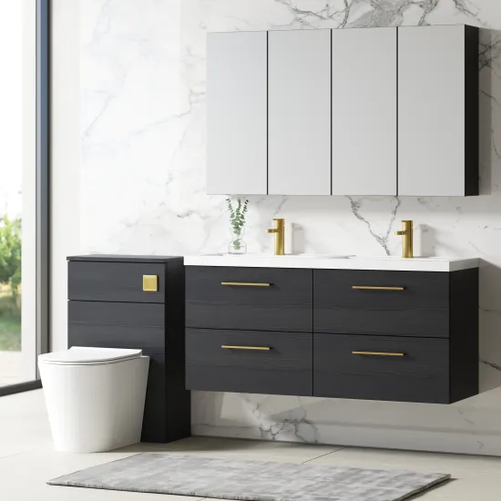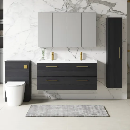 Nuie 1200mm Charcoal Black Wall Hung 4-Door Vanity Unit with Double Basin