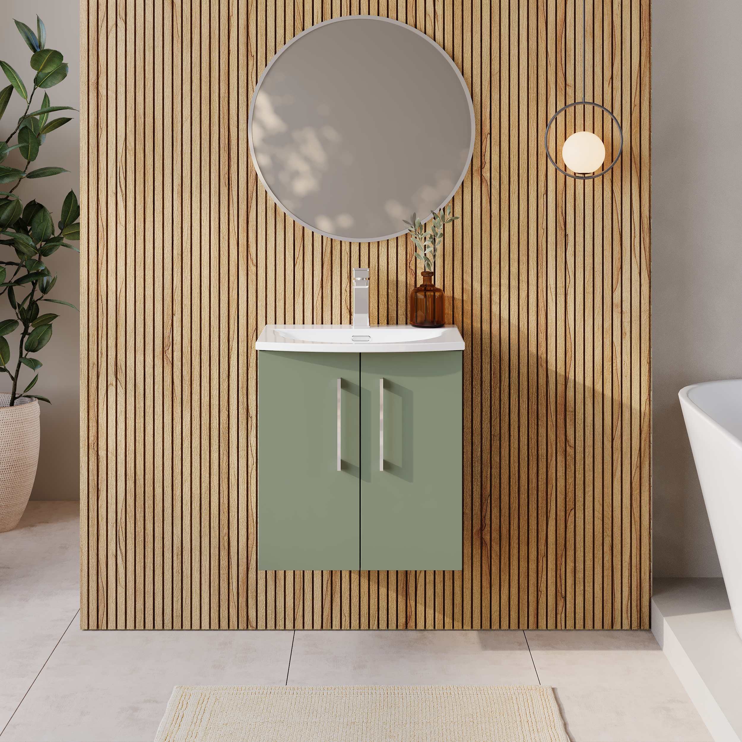 Nuie Arno 500mm Wall Hung Satin Green 2-Door Vanity Unit With Basin