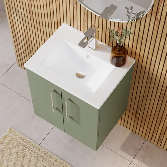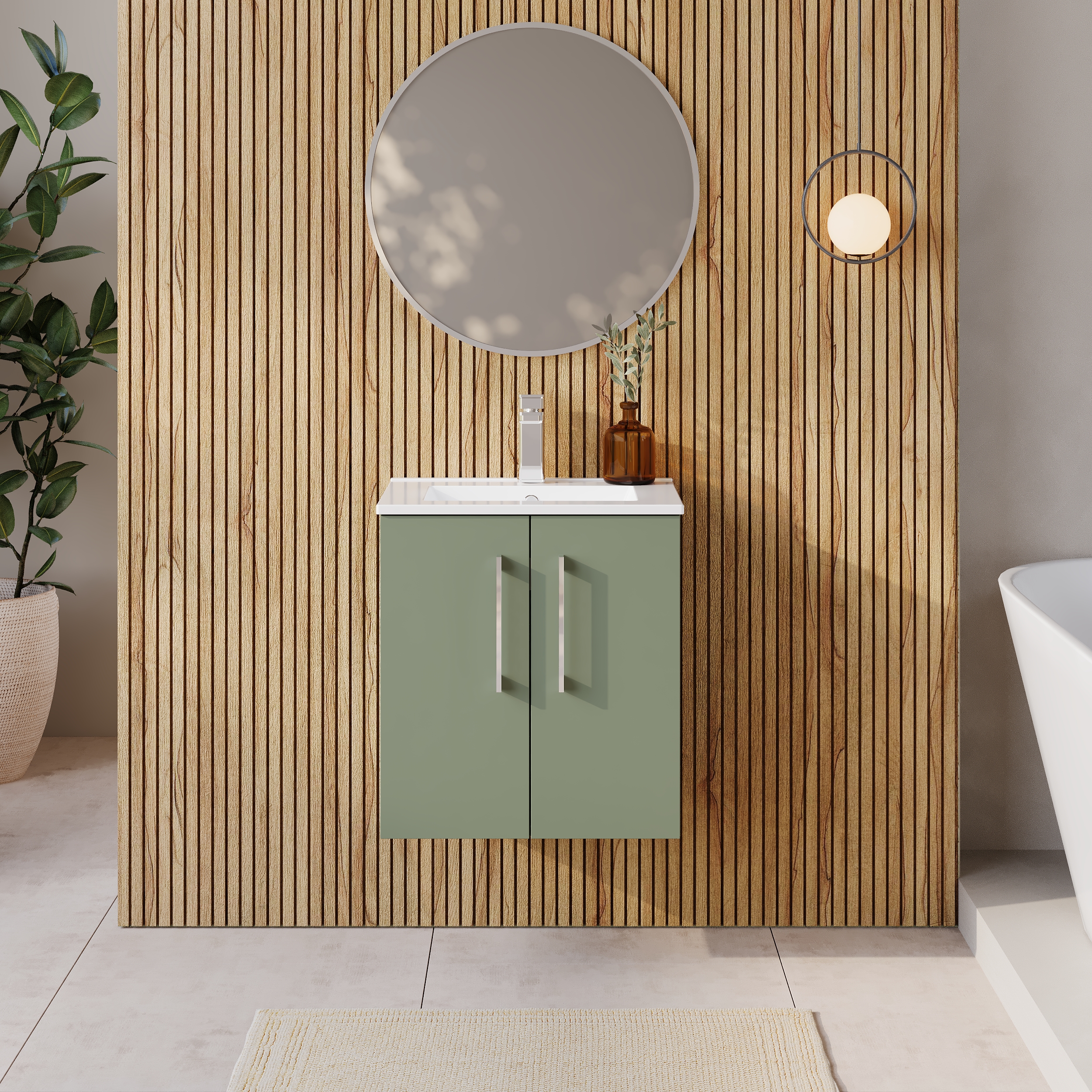 Nuie Arno 500mm Wall Hung Satin Green 2-Door Vanity Unit With Basin